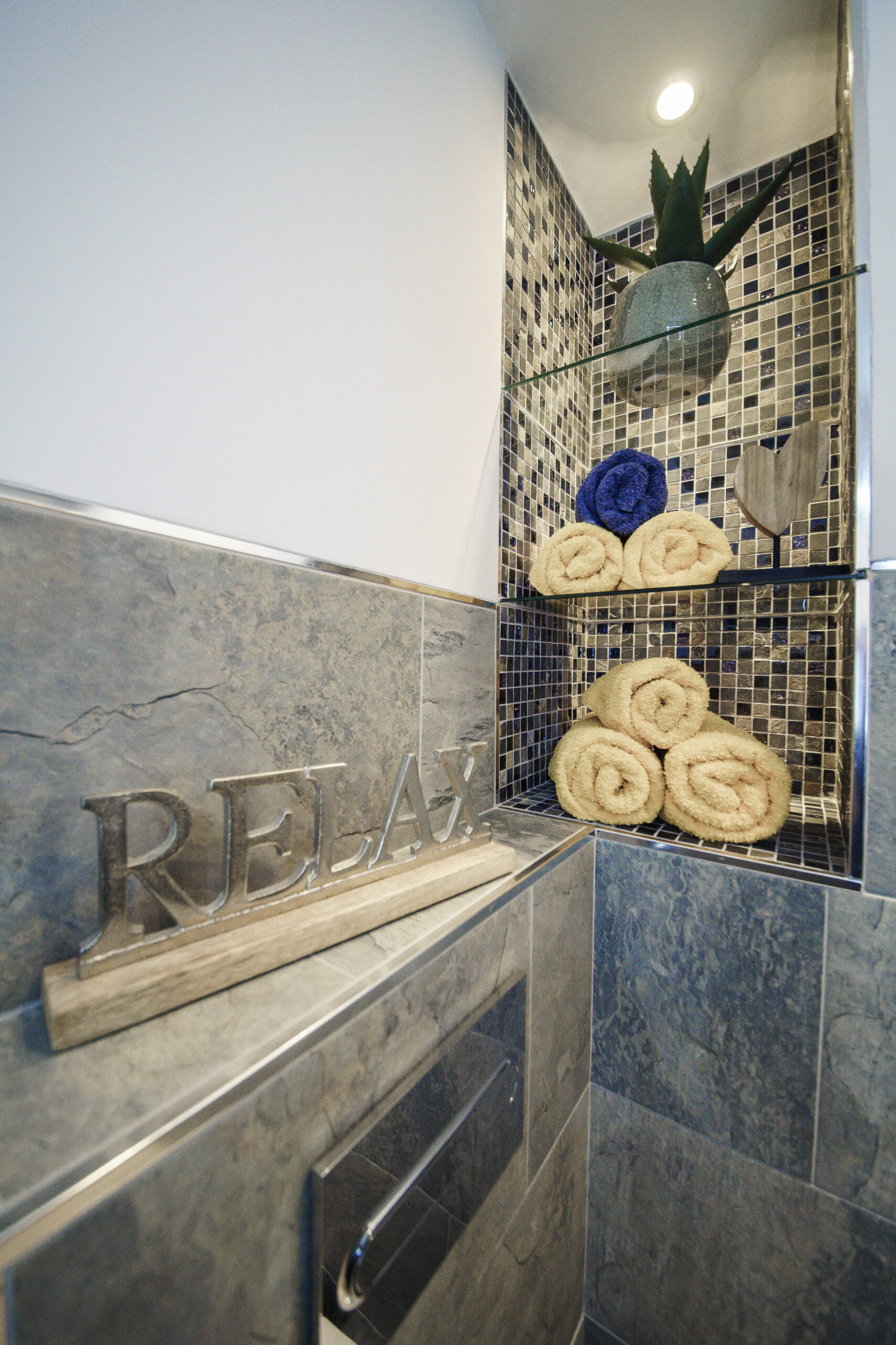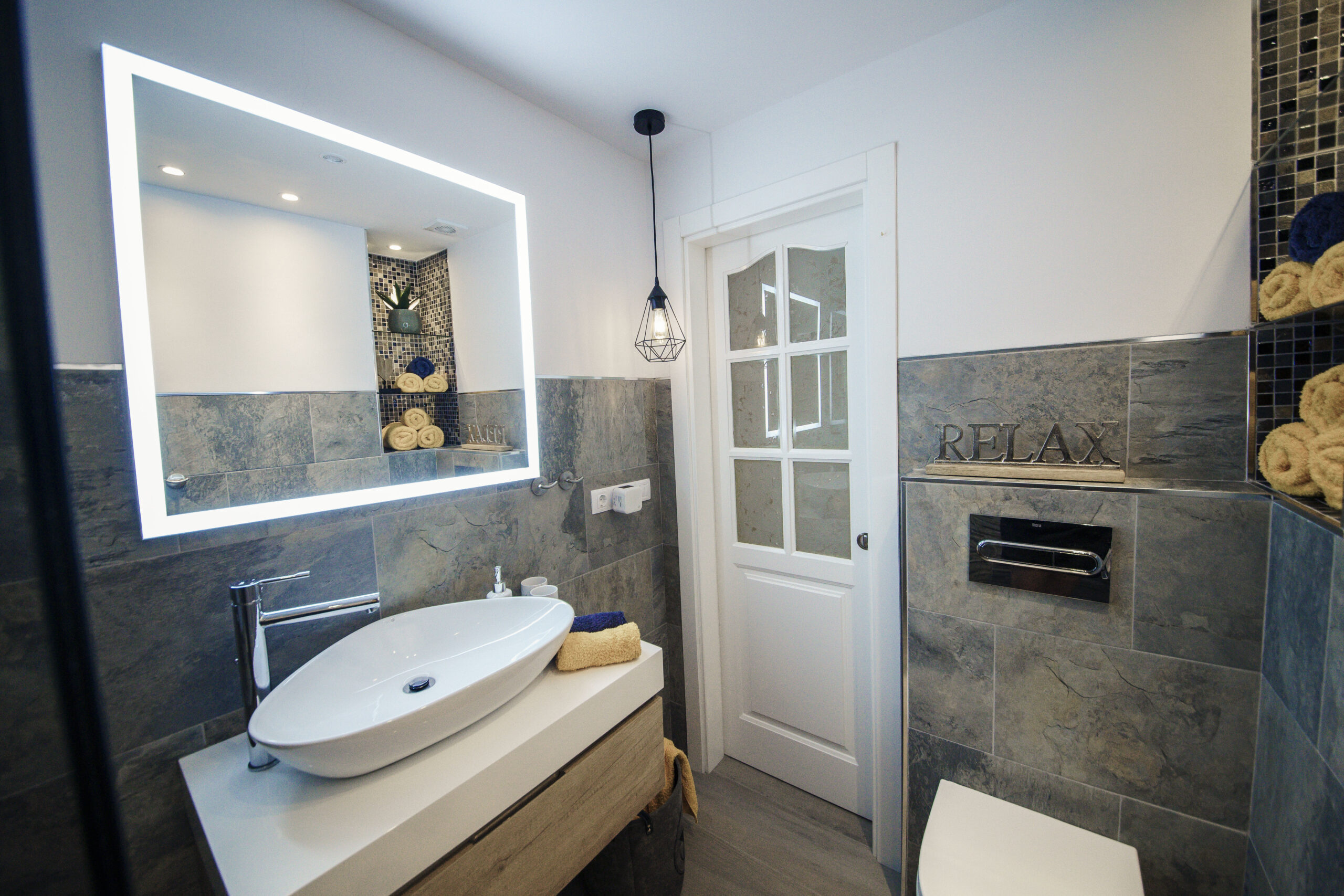 – Modernes Badezimmer mit Dusche & Haartrockner