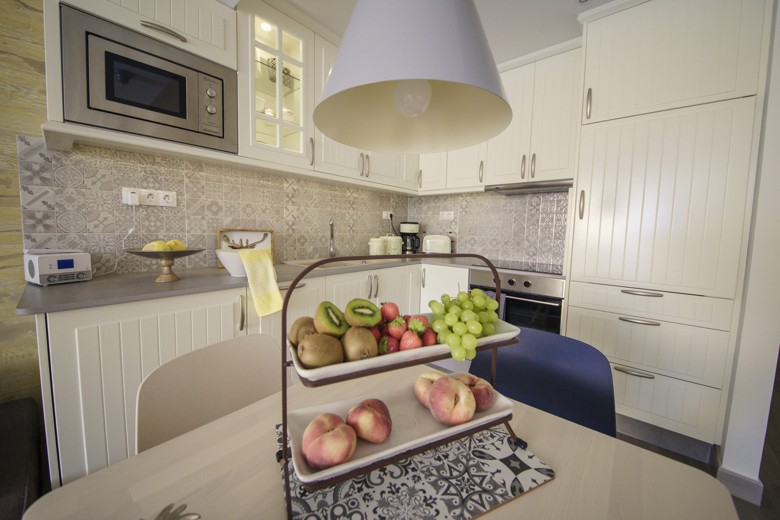 – Voll ausgestattete Küche mit Kühlschrank, Herd, Backofen, Mikrowelle, Toaster, Wasserkocher & Kaffeemaschine